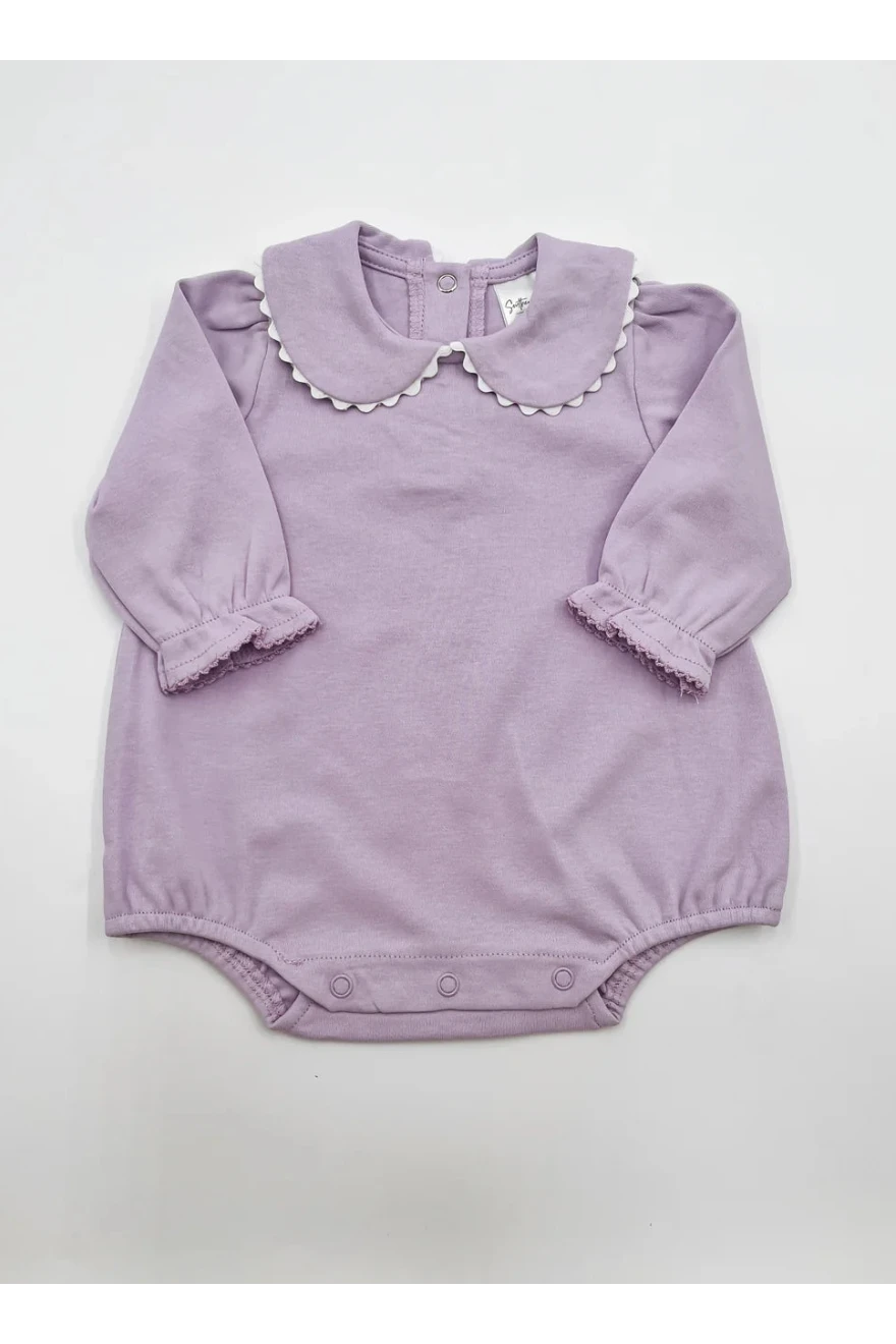 Our long sleeve bubbles are here! Made from a soft cotton/spandex blend, these timeless pieces are perfect for your little blessings. Thoughtful details include a ricrac-edged collar and delicate picot trim on the sleeves, adding just the right touch of classic style.